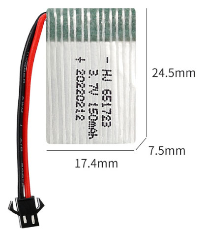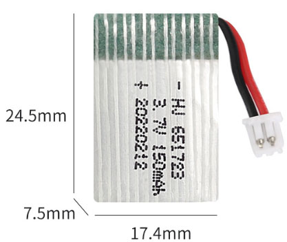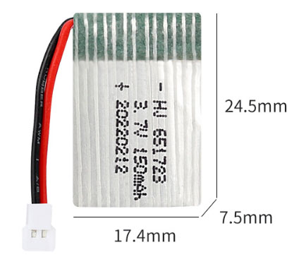 3.7V 150mAh 651723 XH2.54 plug is applicable to SYMA X2, NIHUIU207 H2 H8 Quadcopter and other similar products.