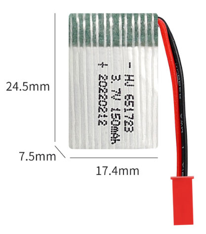 3.7V 150mAh 651723 PH1.25 reverse plug is suitable for UDI U839, JJRC H20, TK M67 aircraft, and other similar products.