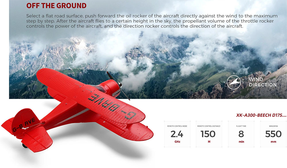 XK A300 RC Plane Beech D17S Model 3D/6G LED 2.4GHz GPS Remote Control Airplane Large Fighter toys Gift