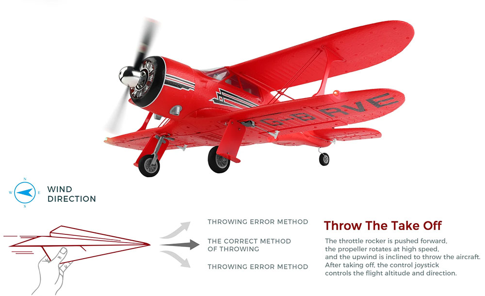 1) Outdoor 6G level flight mode: default takeoff into 6G self-stabilizing mode, gyro self-stabilizing, heading lock, very suitable for beginners to practice flying in fixed-wing mode.