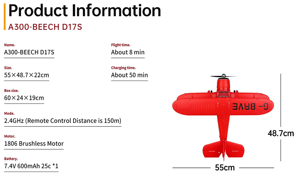 1 EPP+ engineering materials, WWII Beech D17S biplane high simulation like the real one.